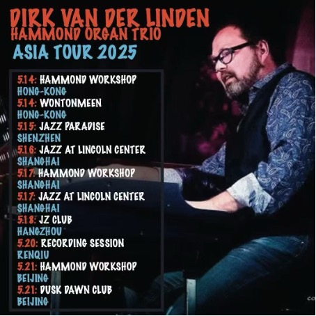 For the first time ever, world-renowned Belgian Hammond organ virtuoso Dirk Van der Linden is coming to China! Known for his fiery grooves, deep swing, and unmistakable soul-jazz touch, Dirk has captivated audiences across Europe — and now brings his dynamic sound to Chinese stages for a very special tour.