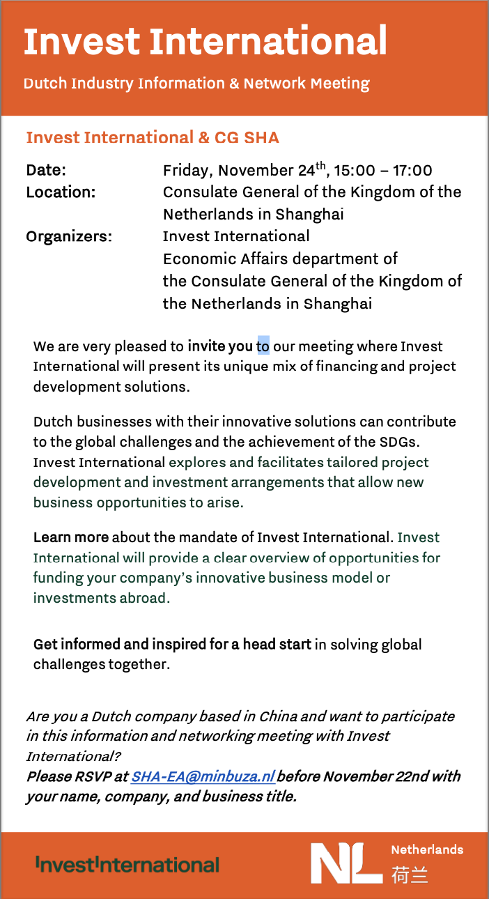 Join our meeting with Invest International showcasing financing and project solutions. Dutch businesses can impact global challenges and SDGs. Discover tailored project development and investment…